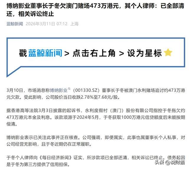 最近,博纳影业老总于冬,被澳门赌场追债473万港元的消息,传得沸沸扬扬。