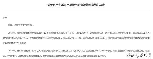 同样是在去年5月,于冬还曾因在2022年、2023年,违规占用公司非经营性资金分别超过2亿元、2.6亿元,收到过监管警示函。