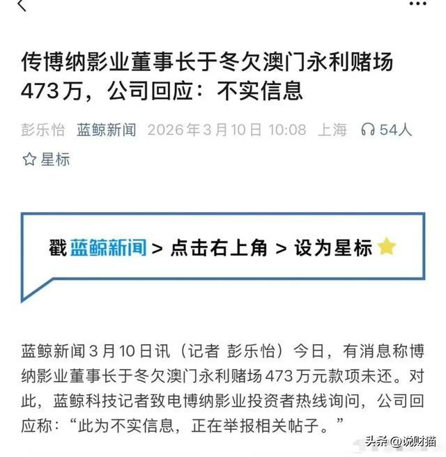 虽然博纳影业称,这事属董事长个人私事,对公司经营无影响,且于冬近期仍在正常履职。