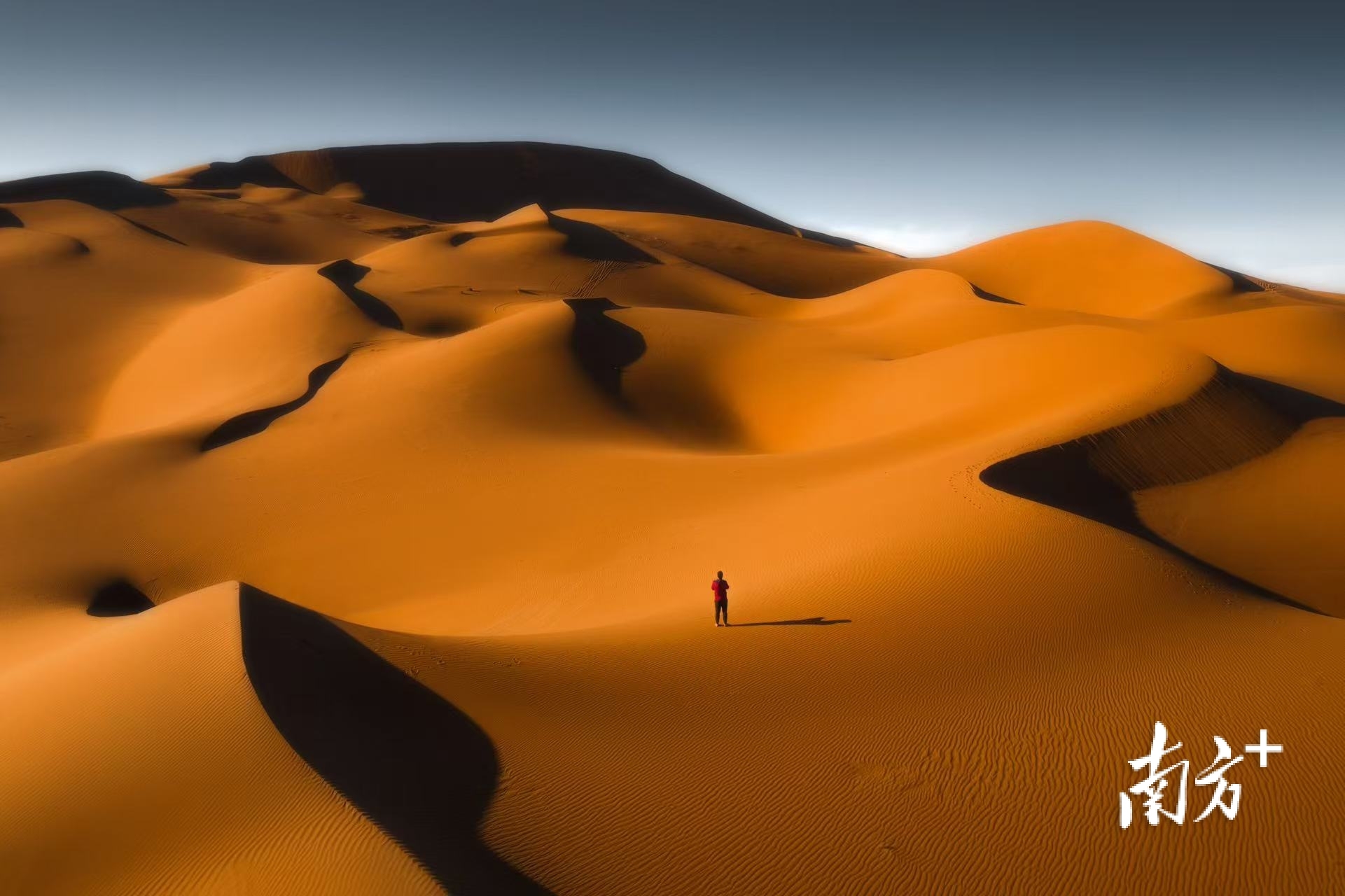 2023年7月拍于巴丹吉林沙漠深处,在巴丹吉林沙漠放飞无人机,我体会到了广袤壮阔,纯净和丝滑,有种寄蜉蝣于天地,渺沧海之一粟的感慨。
